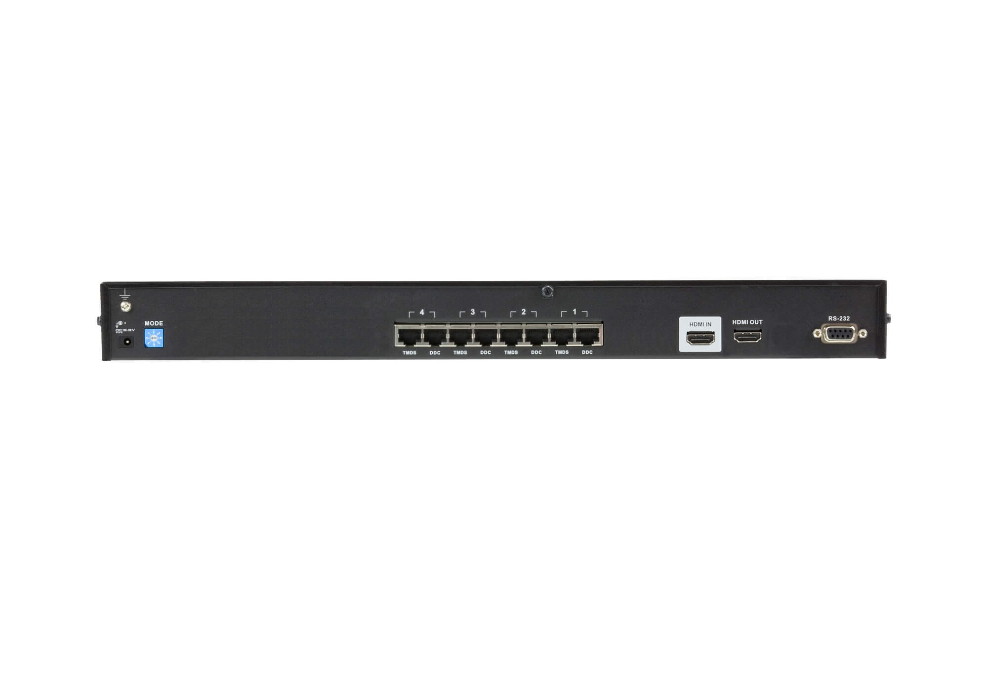 - 1 x HDMI typ A żeńskie (czarne) — wyjście lokalne