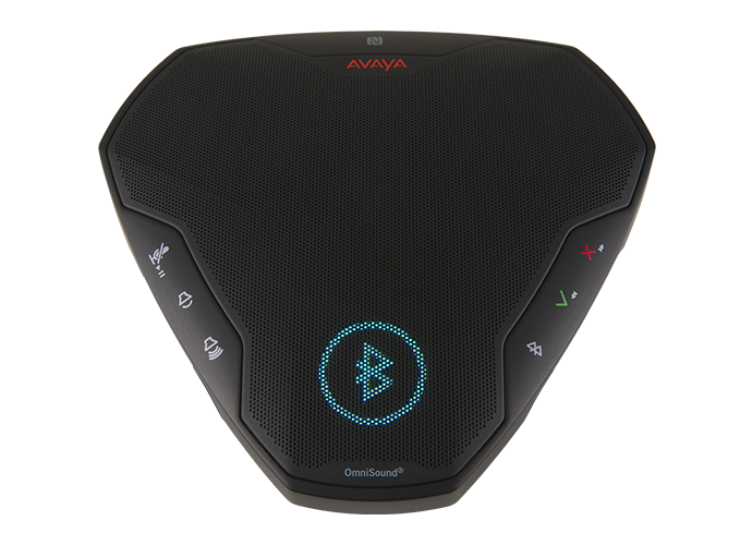 Konferencyjny telefon B109 może być używany z aplikacjami do wideokonferencji Avaya Equinox® i innymi na smartfonie, tablecie lub laptopie. Łatwo łączy się z komputerem za pomocą portu USB lub z tabletem lub smartfonem za pomocą technologii Bluetooth. Ponadto konferencyjny telefon B109 obsługuje błyskawiczne łączenie Bluetooth za pomocą NFC (komunikacja blisko pola) oraz połączenia w jakości HD. Dzięki technologii Bluetooth A2DP (zaawansowany profil dystrybucji dźwięku) możesz odtwarzać ulubioną muzykę z doskonałą jakością dźwięku po zakończeniu spotkania. Jasny i atrakcyjny ekran LCD pozwala szybko sprawdzić, która funkcja jest włączona.