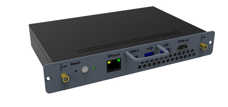 Yealink MCore-OPS do modułu dla Yealink MeetingBoard, który włącza system operacyjny Windows na wyświetlaczu do współpracy. MCore-OPS podłącz się do gniazd go z boku MeetingBoard.