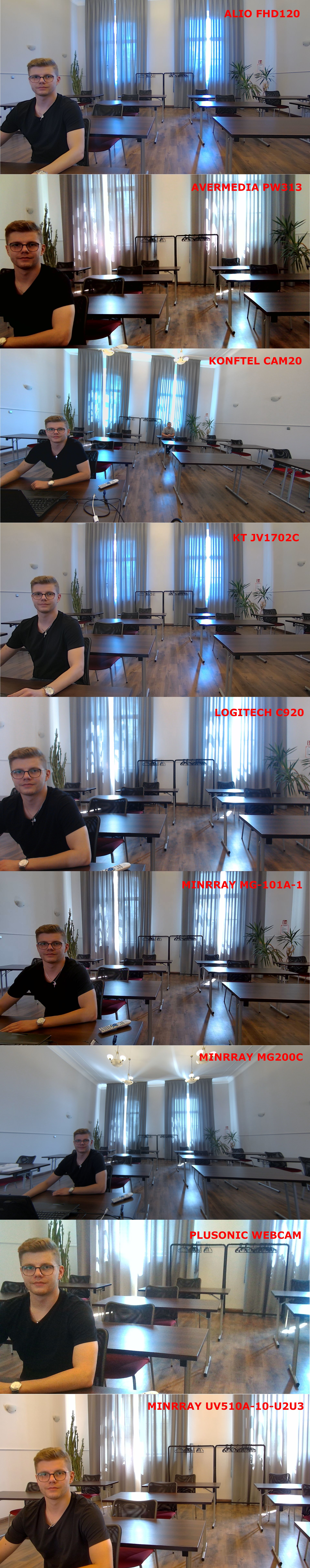 Test porównawczy kamer na dużej sali, która ma około 100m2(9x11m):